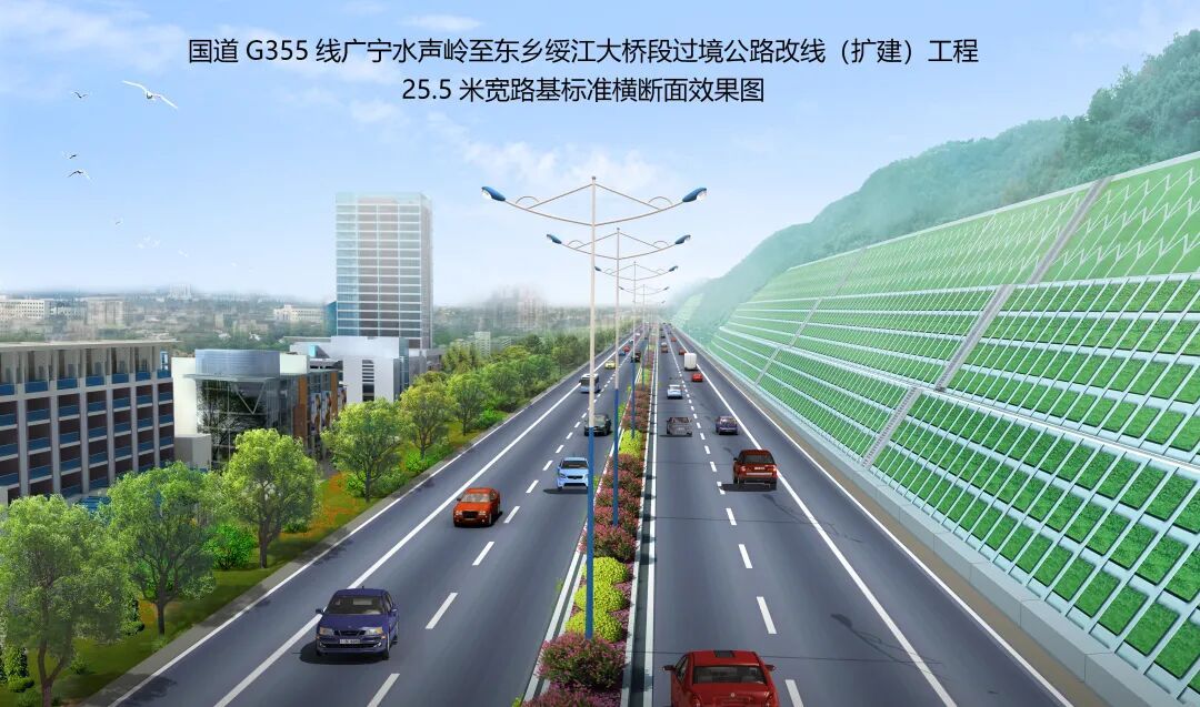广宁北环路,即国道G355线广宁水声岭至东乡绥江大桥段过境公路改线(扩建)工程,项目总投资约7.1亿元,是广宁县重点工程。